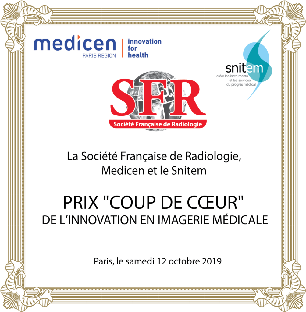 OCTOBRE Journées Francophones de la Société Française de Radiologie – SFR, Coup de Cœur de l’Innovation en imagerie médicale